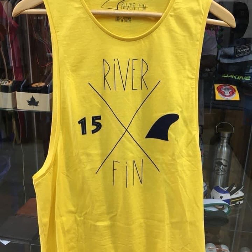 Camiseta de tirantes River Fin fabricada en 100% algodón. Ligera y fresca, ideal para verano, playa y sesiones de surf. Color amarillo.